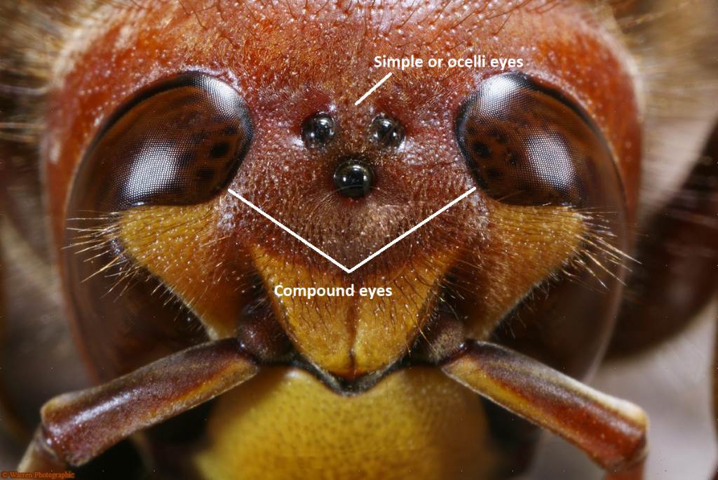 ミツバチの視覚は人間のそれとは根本的に異なり、夜間の活動に大きな制限を課しています。ミツバチは5つの目を持っています。2つの複雑な複眼と、頭頂部にある3つの単眼です。複眼は、働きバチでは6,900個、雄バチでは8,600個の個眼から構成されています。それぞれの個眼は独立した視覚単位として機能し、モザイク画像を形成します。ミツバチは紫外線、青色、緑色の光スペクトルを識別できますが、赤色は認識できません。