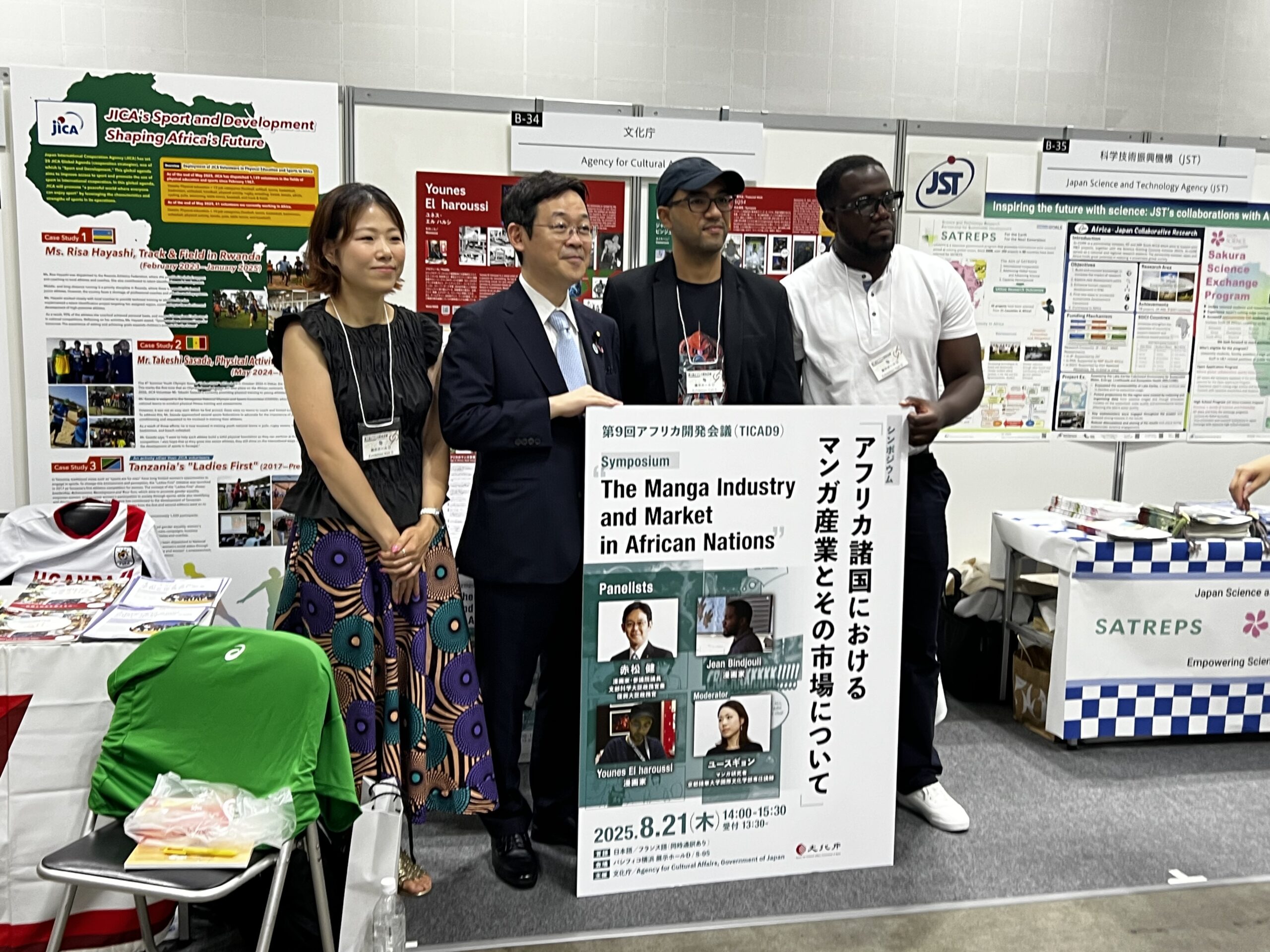 アフリカ約50カ国の首脳が参加した第9回アフリカ開発会議(TICAD9)テーマ別イベントにて、「アフリカ諸国におけるマンガ産業とその市場」のシンポジウムが横浜市のパシフィコ横浜展示ホールDで開催された。主催は、文化庁とAgency for Cultural Affairs, Government of Japanでアフリカ諸国におけるマンガ産業とその市場をテーマにシンポジウムが行われた。ステージには、マンガ研究者のユースギヨン、衆議院議員赤松健、漫画家Younes EL haroussiとjean Bindjouliの4人が登壇した。